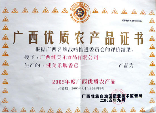 广西优质农产品证书